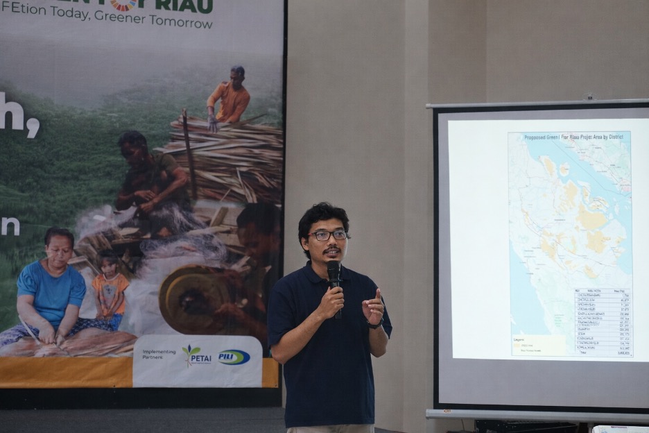 Melalui paparannya, Tenaga Ahli Nesting Development dan REDD+ Governance, Muis Fajar, menyampaikan bahwa GREEN for Riau telah merumuskan indikatif area penghitungan karbon seluas 2,6 juta hektare yang tersebar di 12 kabupaten/kota sebagai dasar perhitungan penurunan emisi berbasis standar ART-TREES dengan baseline tahun 2016. Hanya kawasan yang memenuhi kriteria teknis yang dimasukkan dalam perhitungan, sementara sekitar 49 ribu hektare area konflik diprioritaskan untuk perbaikan tata kelola dan penyelesaian melalui skema seperti TORA (Tanah Objek Reforma Agraria) sebelum dihitung dalam skema karbon.